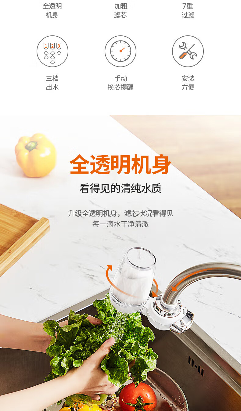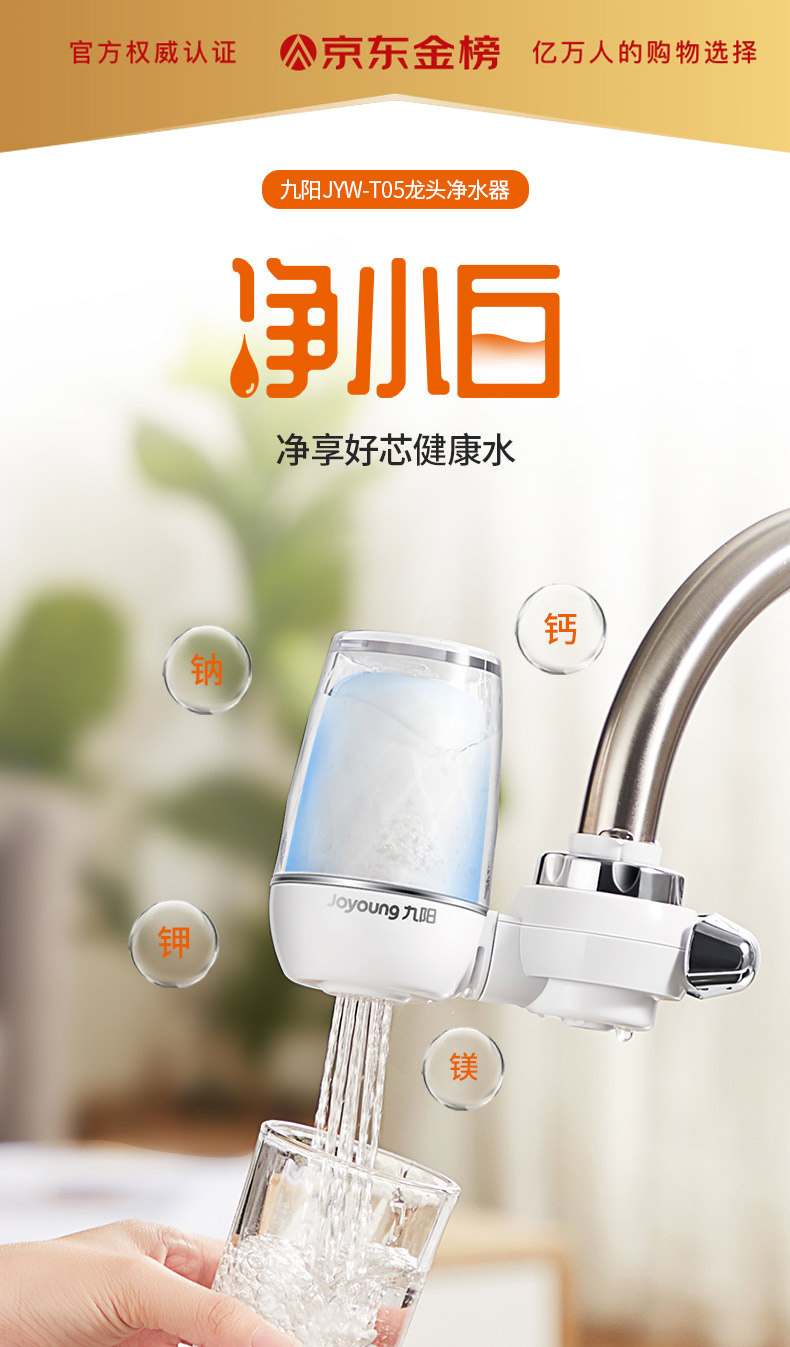 商品名称:九阳(Joyoung)净水器水龙头台式前置净水机家用厨房过滤器自来水可视化可清洗滤芯JYW-T05