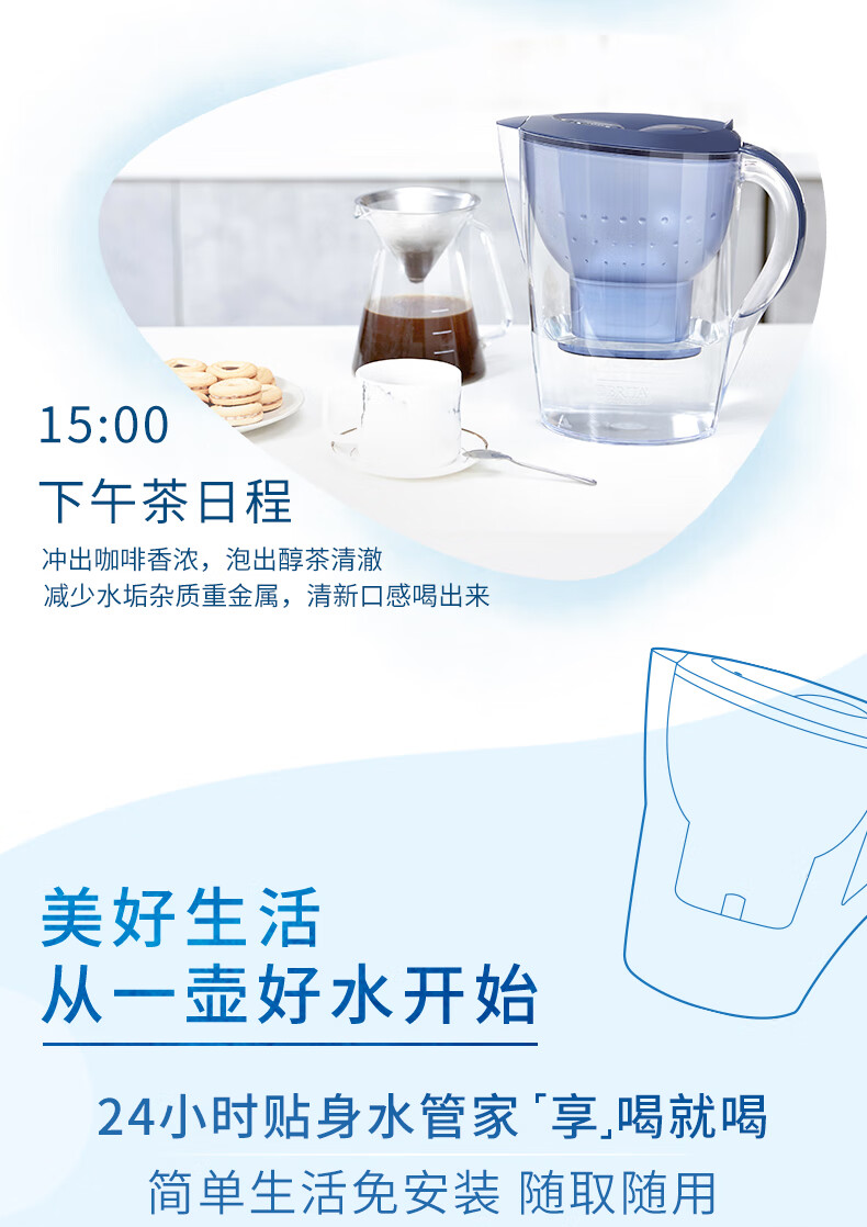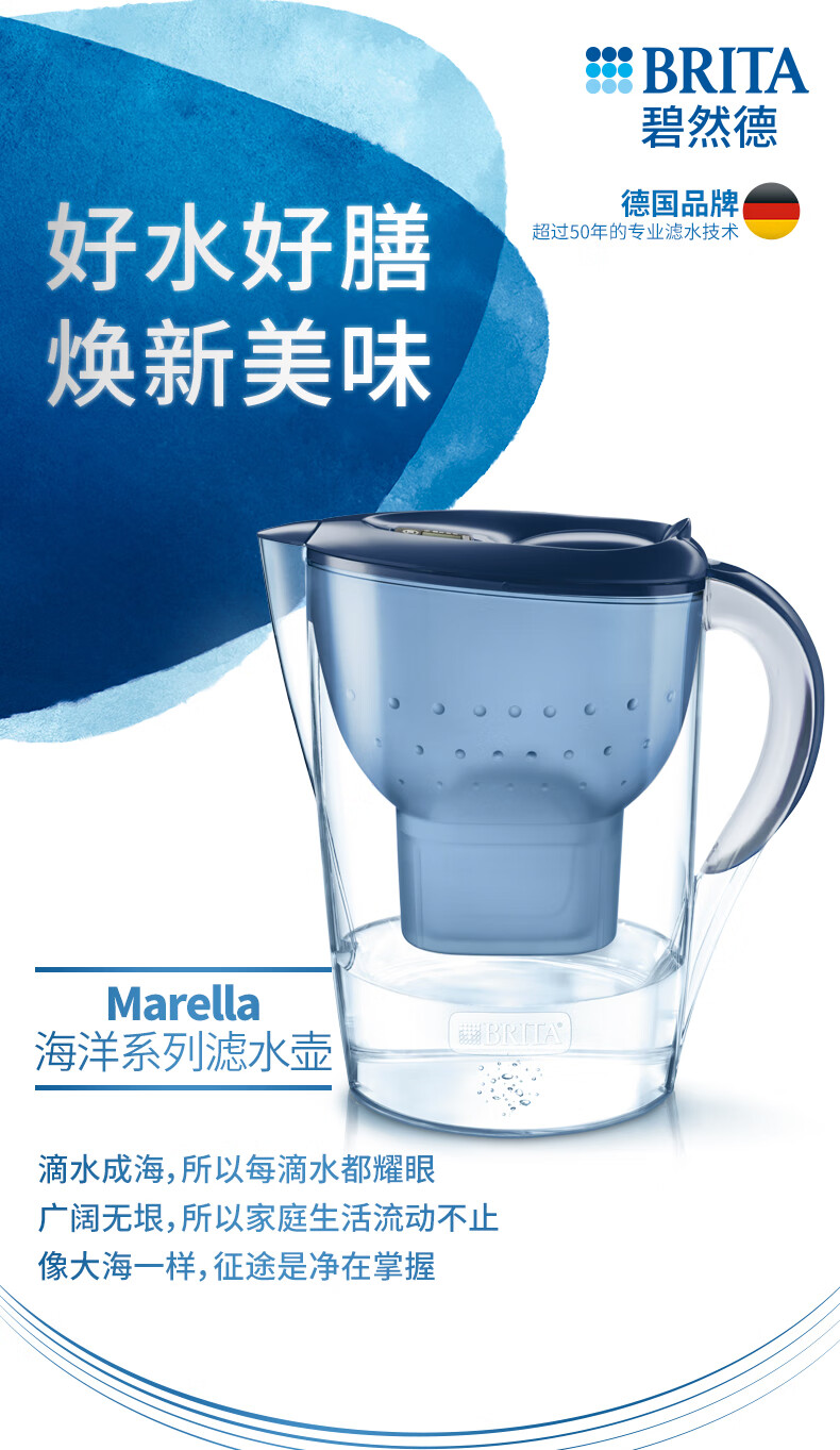 碧然德(BRITA) 过滤净水器 家用滤水壶 净水壶 海洋系列 3.5L蓝色 一壶六芯装