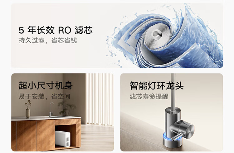 商品名称:米家小米净水器N1 800G 母婴级净水认证 厨房台下家用 5年RO反渗透 小米发布会MR872