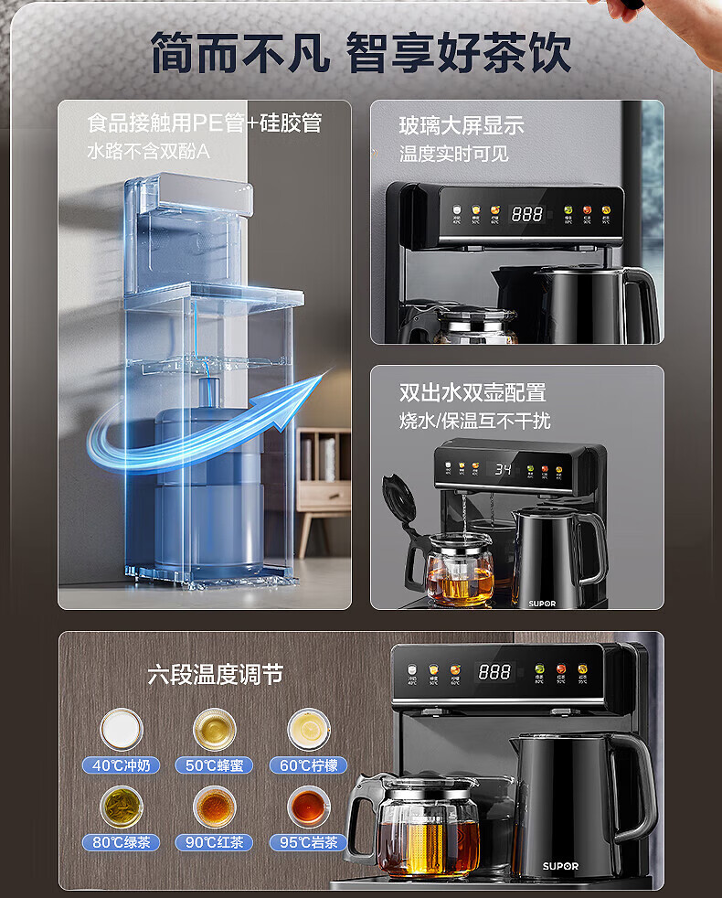 苏泊尔(SUPOR)茶吧机家用高端客厅用茶吧柜饮水机一体机 下置水桶全自动立式烧水壶