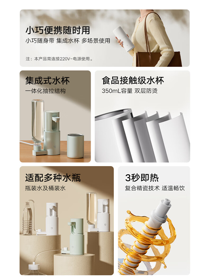 商品名称:米家小米即热式饮水机 便携即热烧水壶出差旅行电热水壶冲奶泡奶桌面家用小型迷你白色